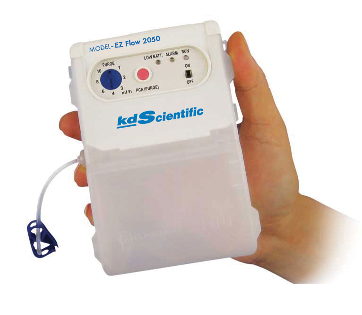 The KDS EZFlow 2050 - A disposable infusion pump designed to electronically deliver continuous constant controlled infusions.