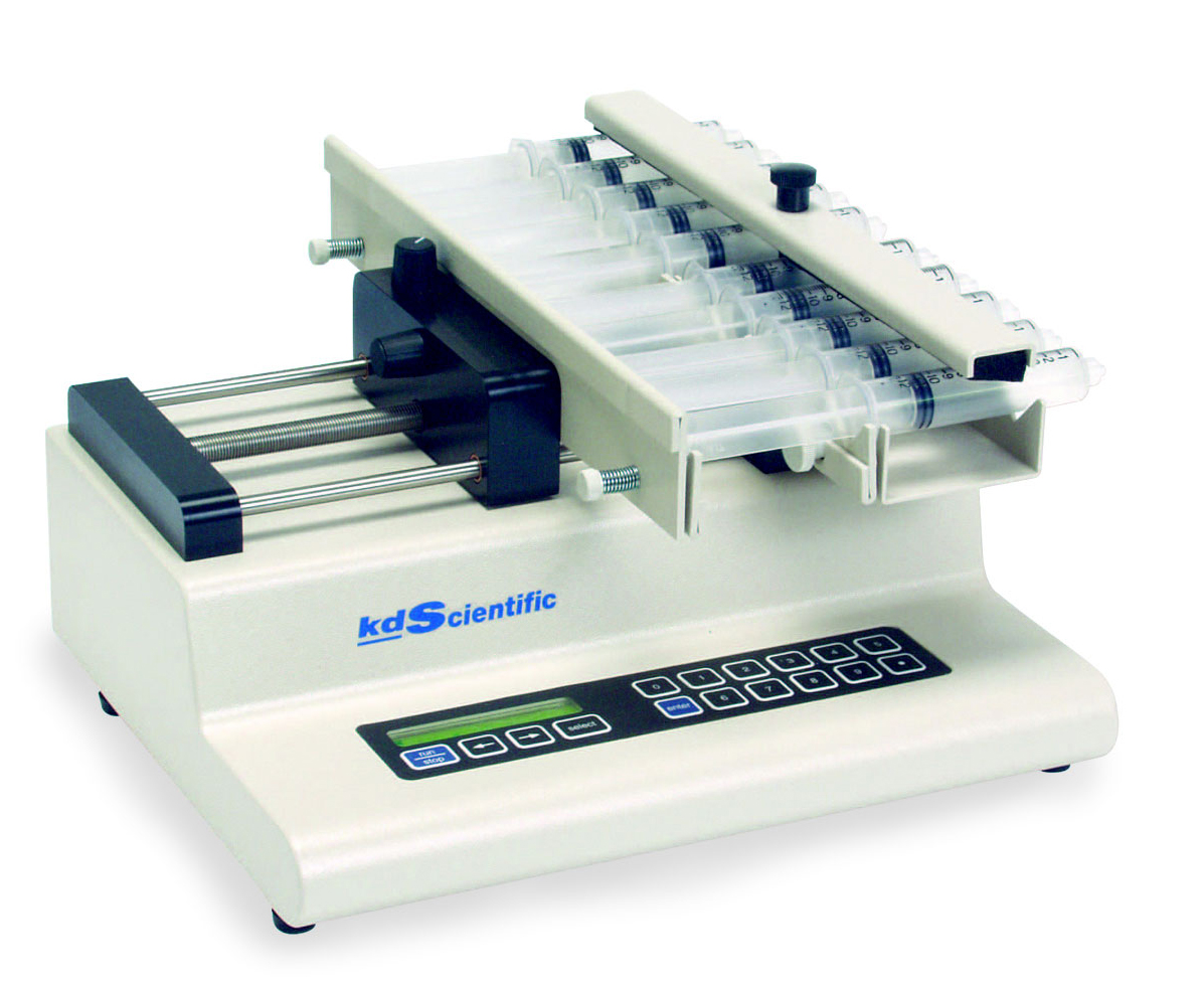 Ideal for applications requiring multiple syringes, the KDS230 is an adaptation of the KDS210. The pump operates exactly like a KDS210, but has been modified to hold up to 10 syringes.