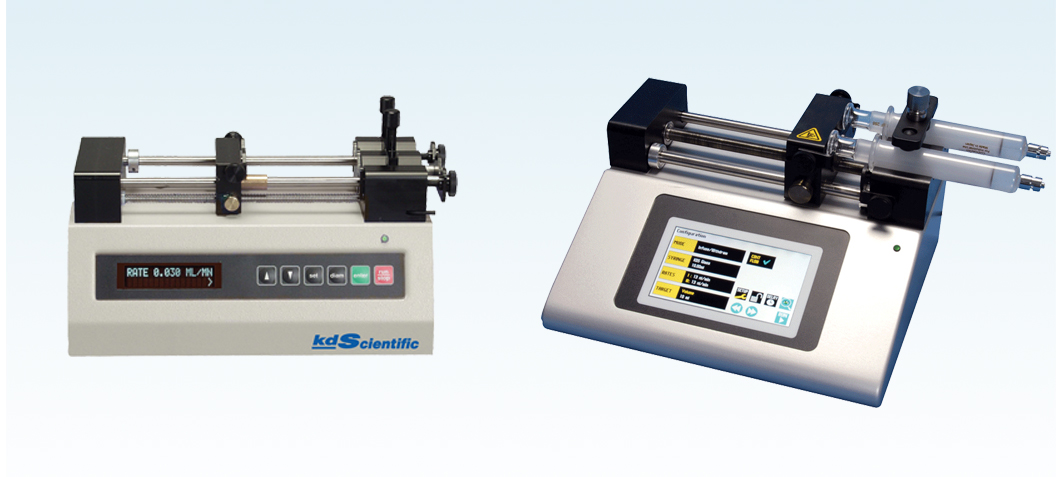 The KDS Pico pump has infusion and withdrawal capabilities with accurate deliveries of picoliter, nanoliter, microliter and milliliter flow. It is especially designed to hold microliter syringes ranging from 0.5µl to 10ml.
