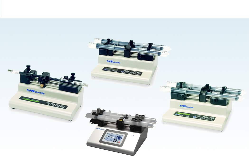 Push/Pull Syringe Pumps provide simultaneous infusion and withdrawal at the same rate with opposing syringes. Models are available to hold 2 syringes or 4 syringes.