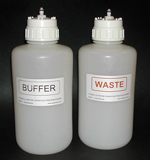 Nalgene® heavy duty polyethylene bottles with One>Click™ quick-connect leak-proof caps for Buffer and Waste.