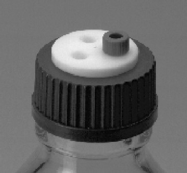 Fits all standard bottles with GL-45 thread. The cap has three holes with 1/4"-28 threads for sparging, delivery, or return lines. All wetted parts are PTFE. (Bottle not included)