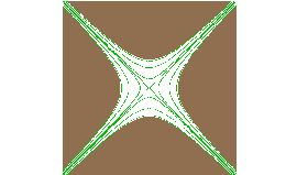 We first examined the fields produced by each type of filter using SIMION's contour feature. This utility plots equal-potential contours within a cross-section of an instance. Results are shown in Figure 2. Figure 2a, 2b, and 2c show each filter independently. The contours represent ground and +/- 90, 50, and 10 percent of the voltage on the electrodes. Figure 3 illustrates an overlay of the QMA, CQMA, and ideal hyperbolic electrodes. In the center region the contours overlap within the precision of the simulation. (Figure 3b is an expansion of the center region.) From this comparison we expect that the CQMA will have filtering properties that are similar to standard devices. Their performance will be most dependent on the precision of manufacture and assembly. As previously pointed out the CQMA may have advantages in this area.