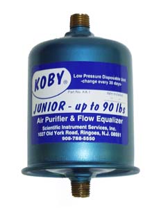 Koby Air Purifiers are installed on exhaust ports of roughing pumps to adsorb remaining compressed air contaminants such as oil aerosols, oil vapors, certain other hydrocarbon vapors, and trace moisture. They also trap all foreign solid particles such as dirt, dust, rust, and pipe scale down to 0.5 microns in size. In addition, Koby Air Purifiers can be used for efficient adsorption and removal of organic vapors and aerosols, noxious odors, certain foreign gases and bacteria, and are effective in removing certain inorganic vapors and aerosols from compressed air and vacuum air.