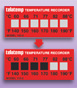 Telatemp non-reversible temperature recording labels economically sense and record surface temperatures. Each recorder contains six sealed temperature sensitive indicators which turn permanently and irreversibly from silver to black at its calibrated rated temperature. Response time is less than one second with an accuracy of ±1% or 2% depending on the temperature rating. Rated temperatures are printed in both d°F and °C at each indicator window, and the direct readout can be read at a glance. The miniature size and thickness (nominal 0.01") of these labels allow installation in areas and on parts which are not practical for other instruments.