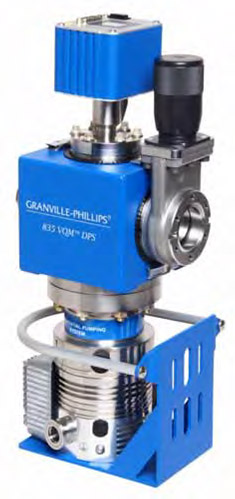 Vacuum Quality Monitor System (835 VQM™, Granville-Phillips®) The world’s fastest, lowest power, gas compositional analysis autoresonant ion trap mass spectrometer (IT-MS) instrument with full data collection, spectral deconvolution, and data logging software. Compact size. 1–145 amu at 85 ms capture rates or 1-300 amu at 120 msec. UHV to 10-5 Torr, or 3 Torr with differential pump. Usually coupled with a total pressure gauge to provide partial pressures of each gas.